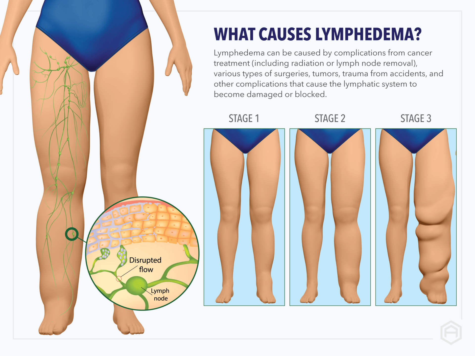 - 림프절 제거, 암 치료(특히 유방암, 자궁암), 방사선 치료로 인한 손상.
