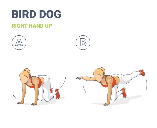 - Bird-Dog: 균형과 조정을 촉진하면서 코어와 허리에 작용합니다.